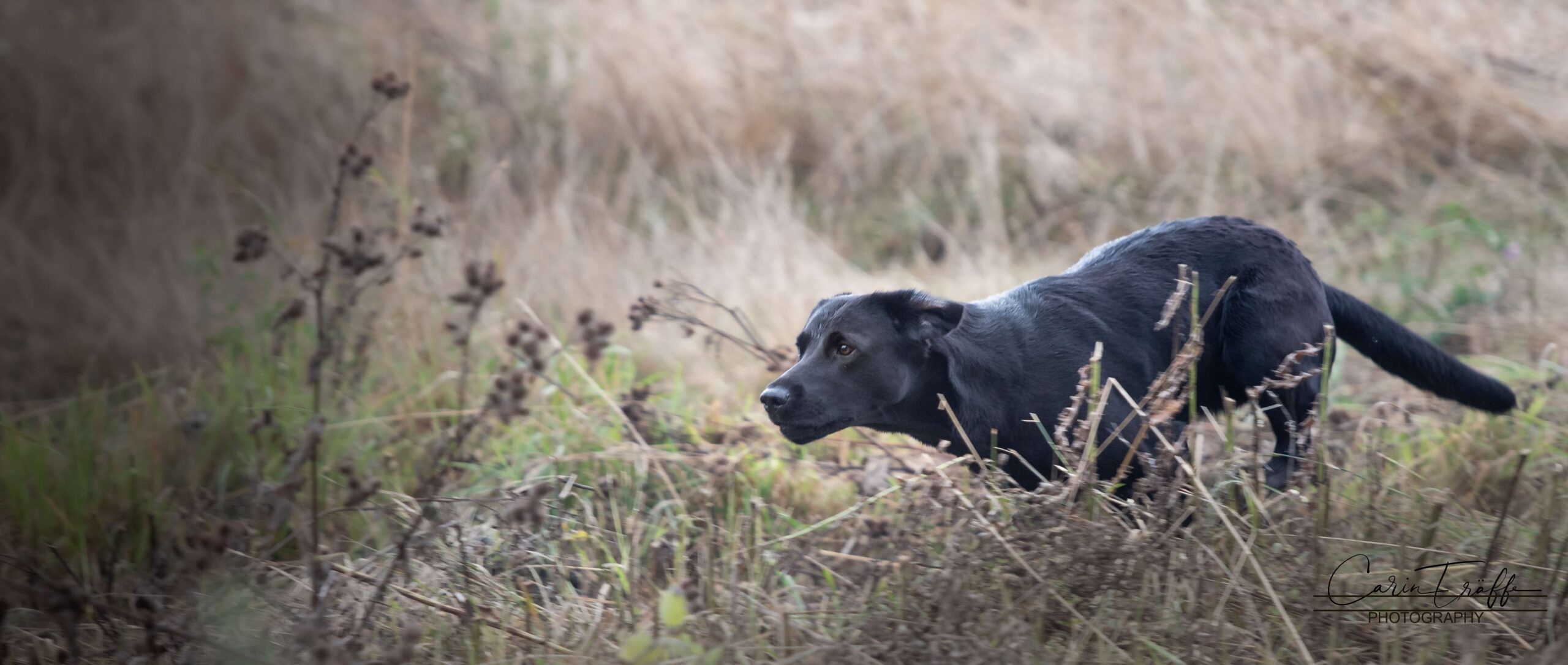 Hun er ikke bare en hyggehund. Hun er også Renés trofaste trænings- og jagtkammerat. Rolig, koncentreret – og med en mening i ny og næ. På jagt går hun fri ved fod som en sand prof og knalder aldrig. Når vi sidder på apportørvognen, sidder hun selvfølgelig på skødet. Man er jo fars pige!
